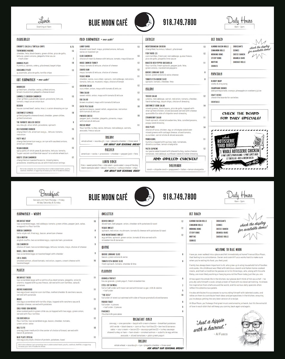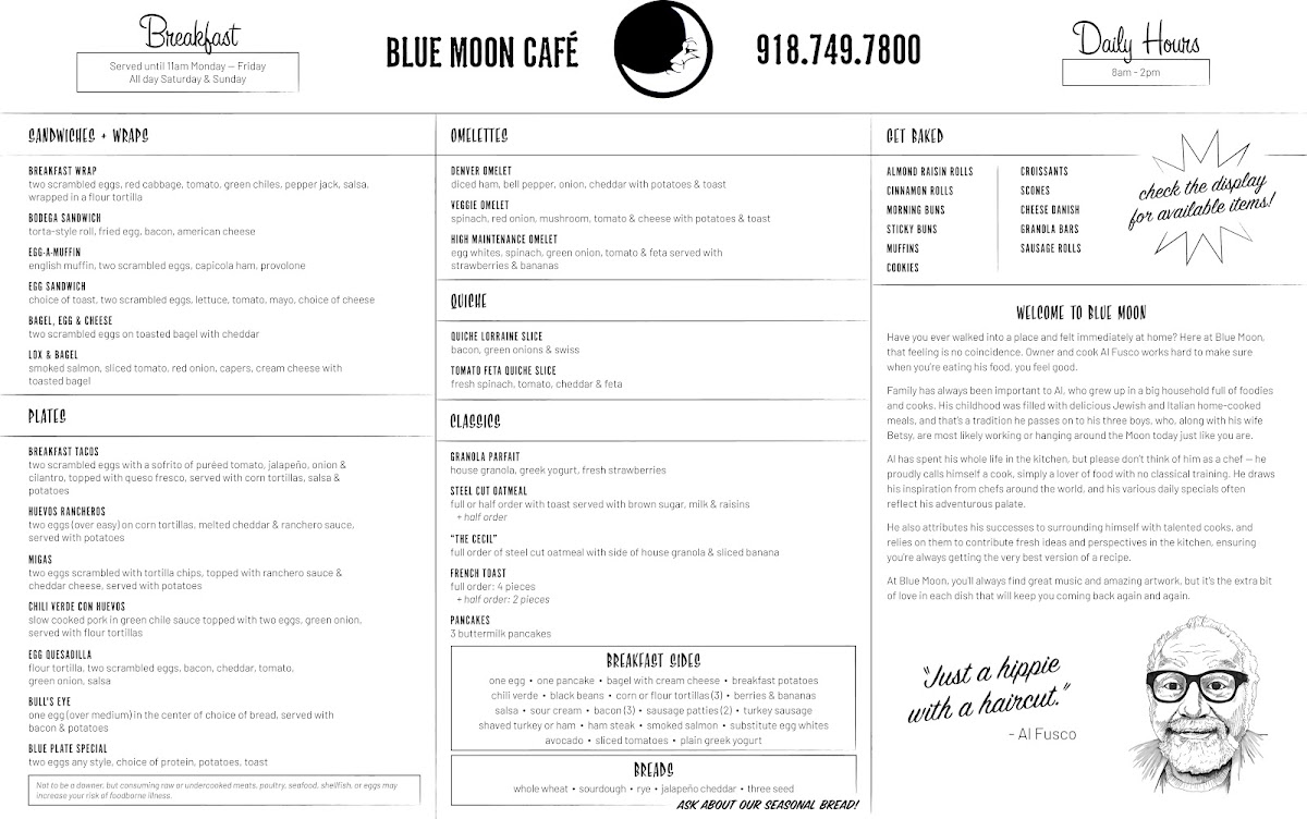 The menu at Blue Moon Café offers a relaxed and inviting selection that blends classic breakfast favorites with thoughtfully crafted casual bites. The focus here is on approachable dishes that feel right for a laid-back morning or a leisurely afternoon gathering, whether you’re meeting friends or enjoying some quiet time with a good cup of coffee.